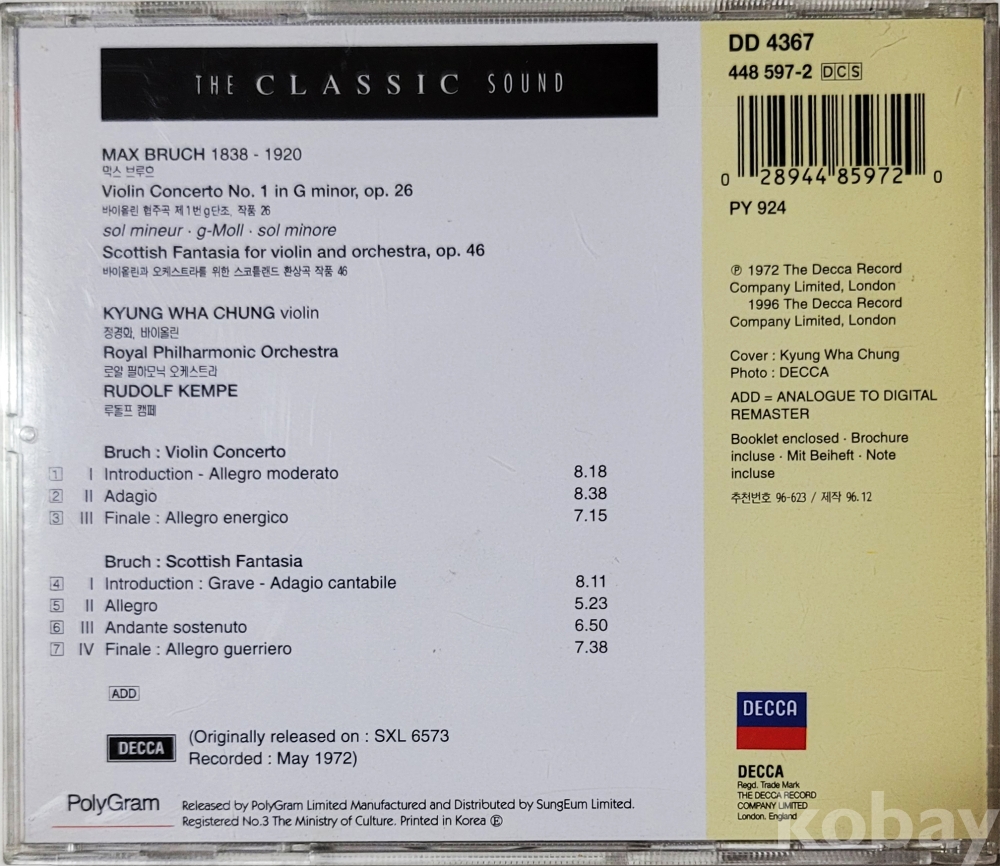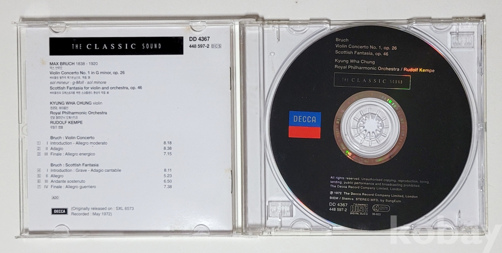 물 품 명 | [클래식] 정경화 / 막스브르후 바이올린협주곡 1번,스코틀랜드환상곡 / 1996년 / 데카 |