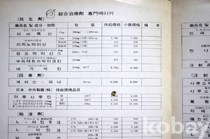 (의약 팜프렛) 제품가격표 - 대한중외제약 발행...