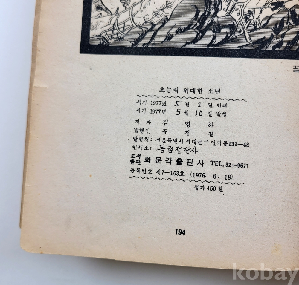 물 품 명 | 김영하 / 초능력 '위대한 소년'(일명 ; 백만불의 소년) / 오뚜기문고 / 1977년 초판 / 화문각출판사 |