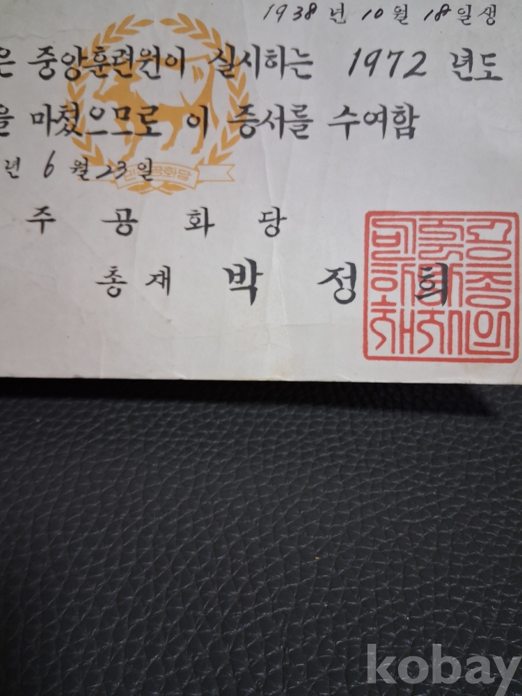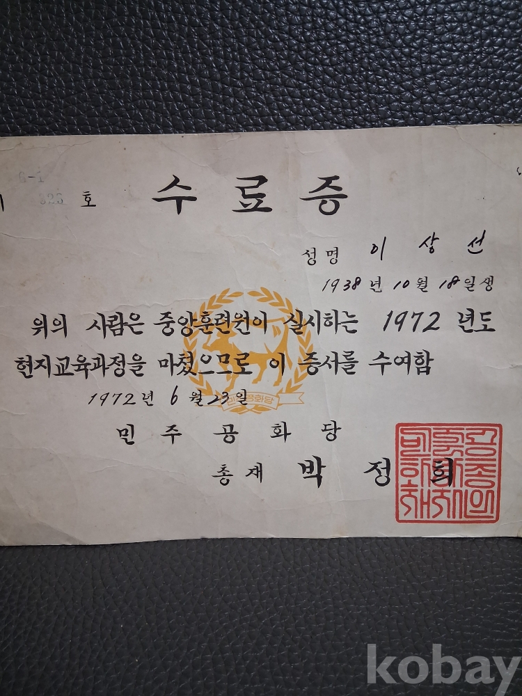 총재시절 박정희대틍령 수료증 입니다