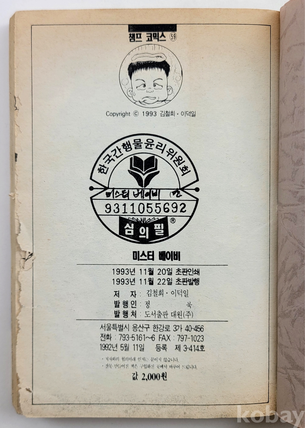 물 품 명 | [챔프코믹스] 이덕일 / Mr. 베이비 / 1993년 초판 / 도서출판 대원 |