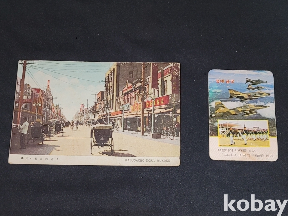 빈티지 세월 감이 느껴지는 Kasuga-Dori MUKDEN(현재 중국의 선양) 사진엽서 편지와 1971년 정예 공군 미니 카드 등 2종 일괄입니다.