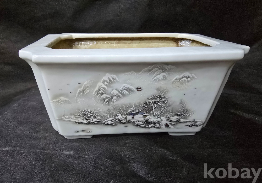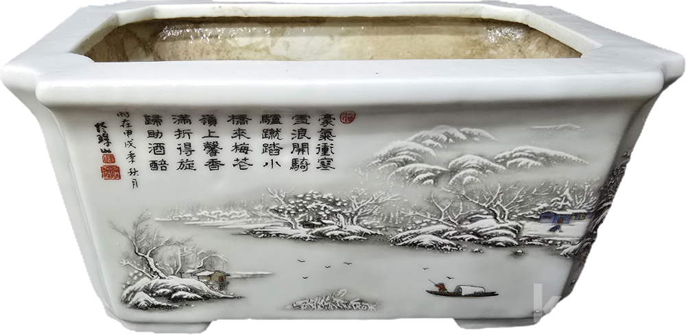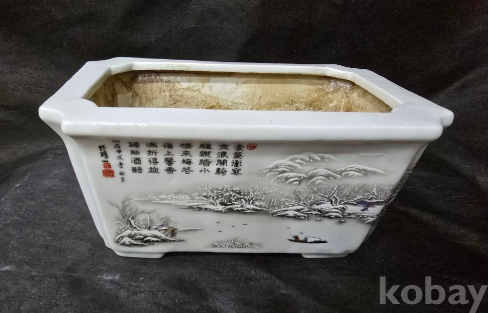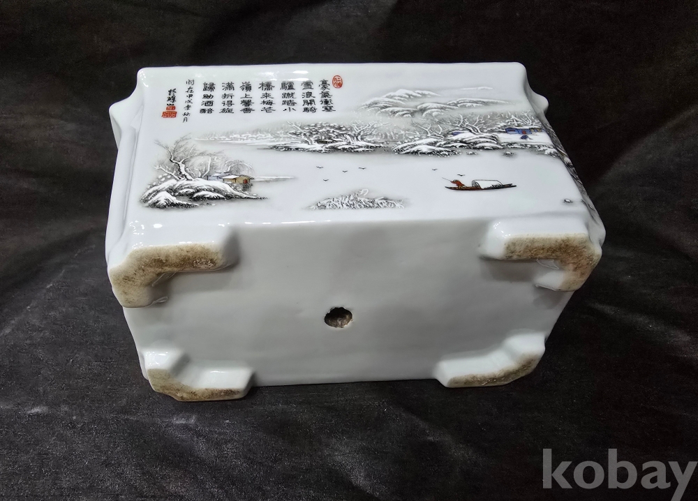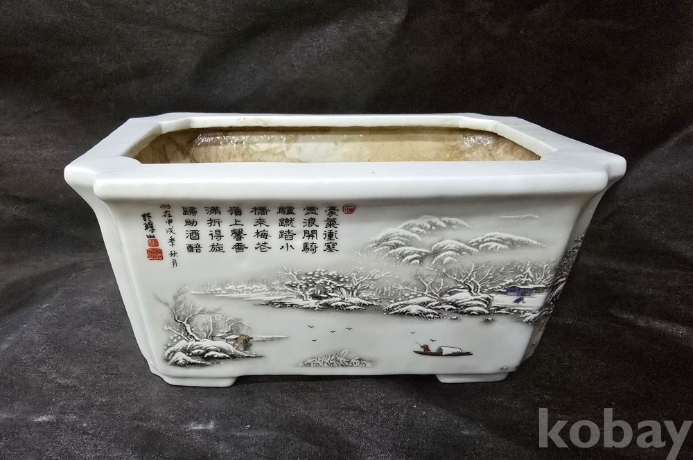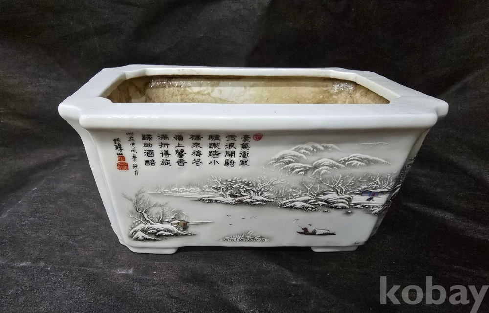 중국명품도자기 / 주산팔우 허화인 설경그림 / 명품 난초화분