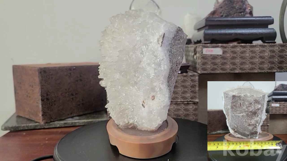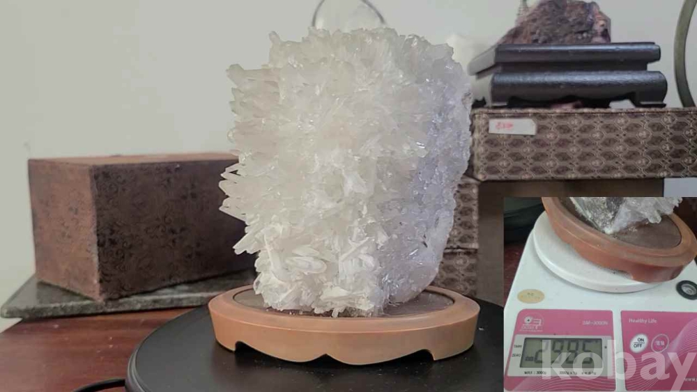 좌대위에 앉은 소형 수정 수석입니다