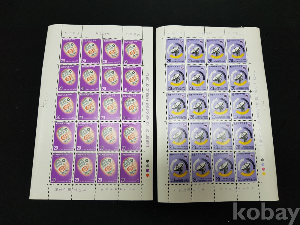 - 미사용 1977년 국제전기통신연합가입 25주년 기념 등 미사용 전지 2종 모음