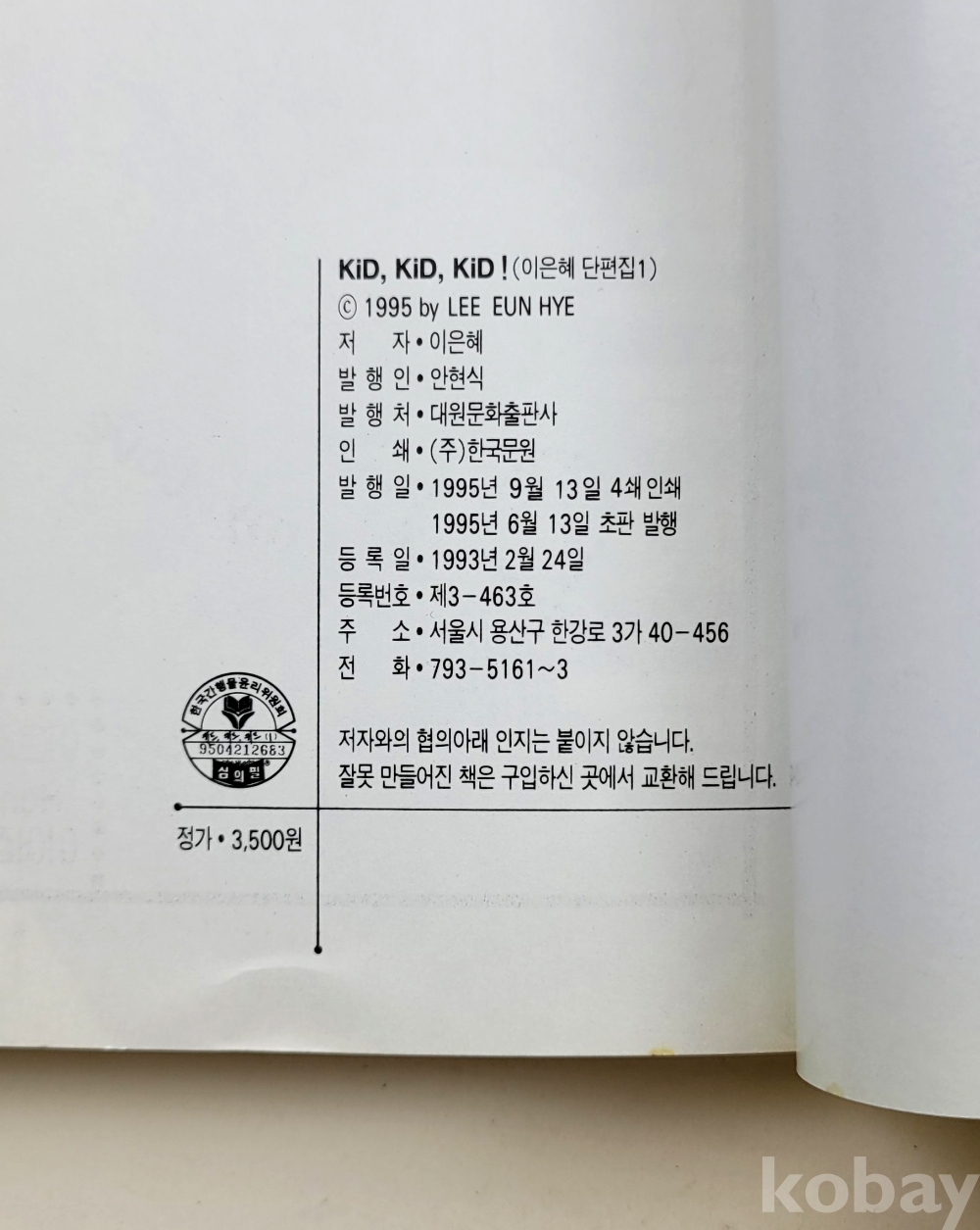 물 품 명 | [스페셜코믹스] 이은혜 : 단편집(2) / KiD, KiD, KiD ! / 1995년 초판 / 대원문화출판사 |