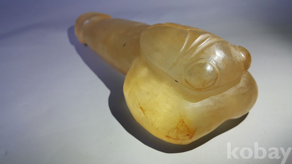 옥질과 형상이 귀여운 기물 입니다. 빛의 투과율과 조각이 매우 좋습니다. 작지만 고급 기물입니다