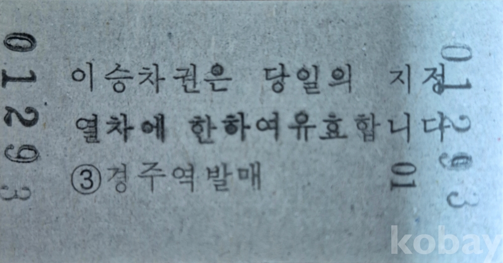 통일호 승차권 특정구간 경주-반야월 노소입니다.