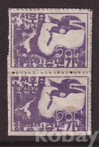 - 미사용 1946년 해방 일주년 기념우표 세로 페어(pair) 2매 모음
