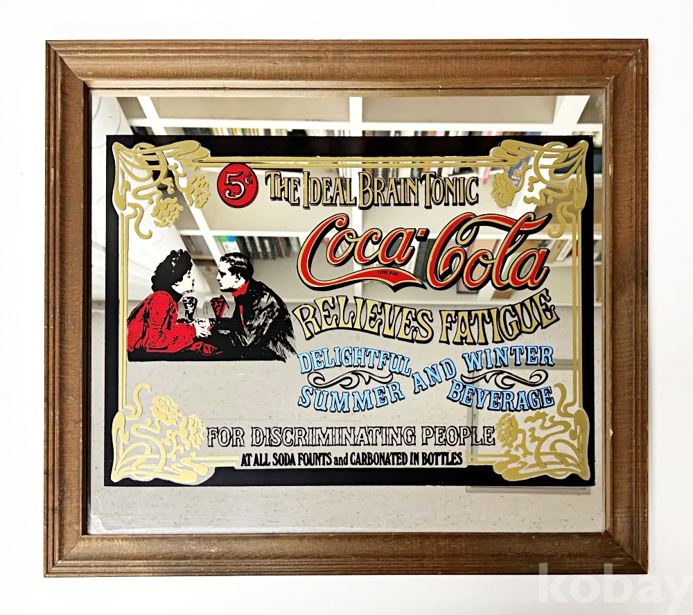 상품설명 | '코카콜라' 로고가 새겨진 빈티지 거울로, 초기 홍보 멘트인 '이상적인 두뇌 강장제(The Ideal Brain Tonic)' 등 당시 마케팅 방식을 찾아볼 수 있다. | ||