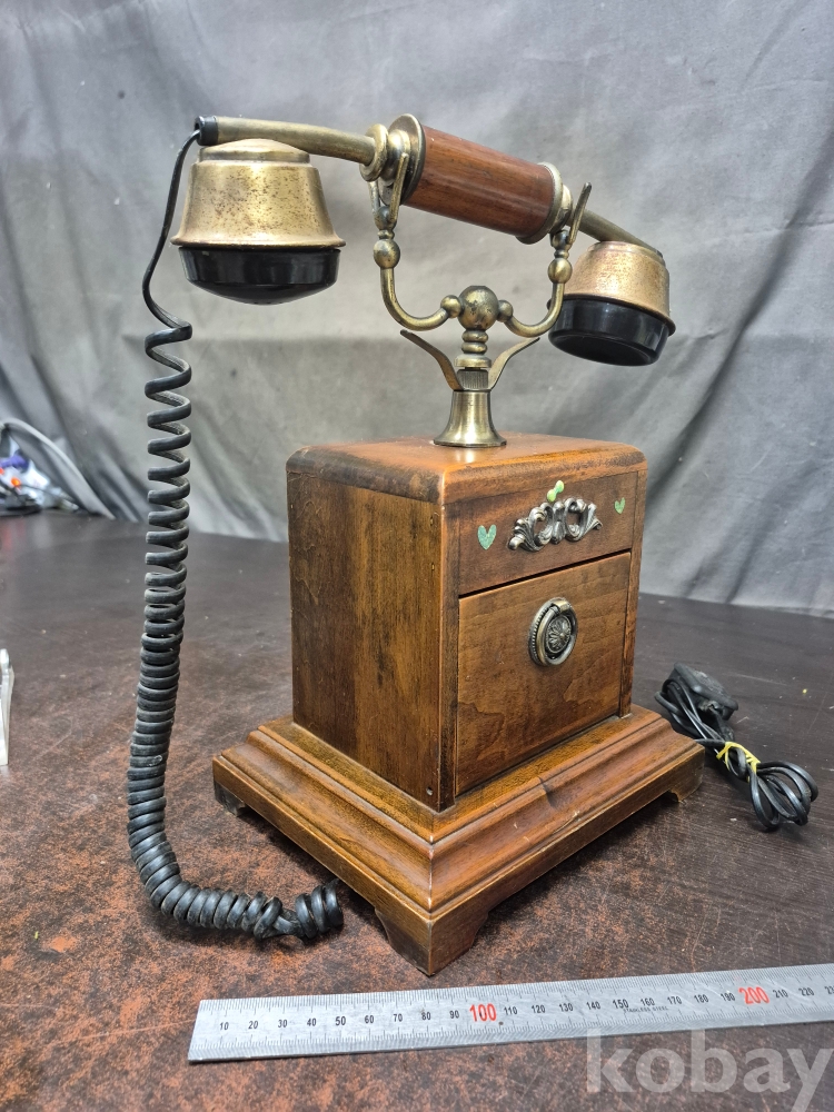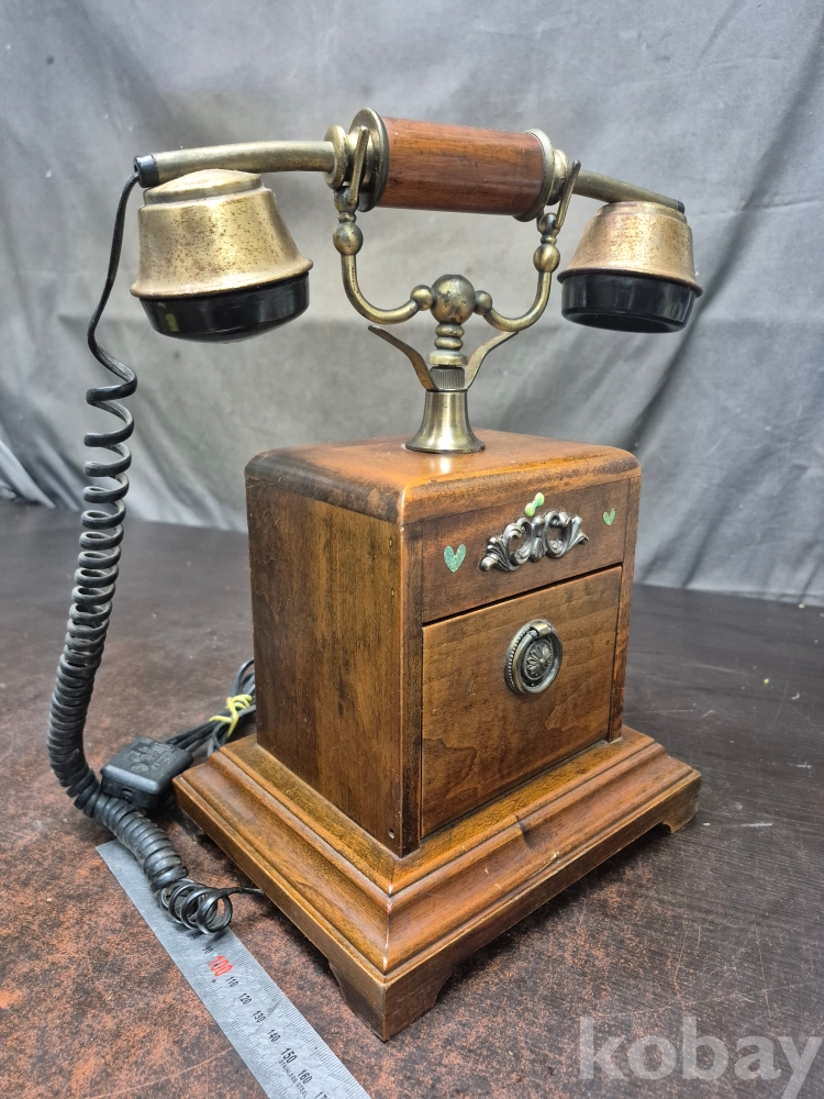 엔틱 원목 탁상용 버튼식 전화기 노테스트 21*17*31