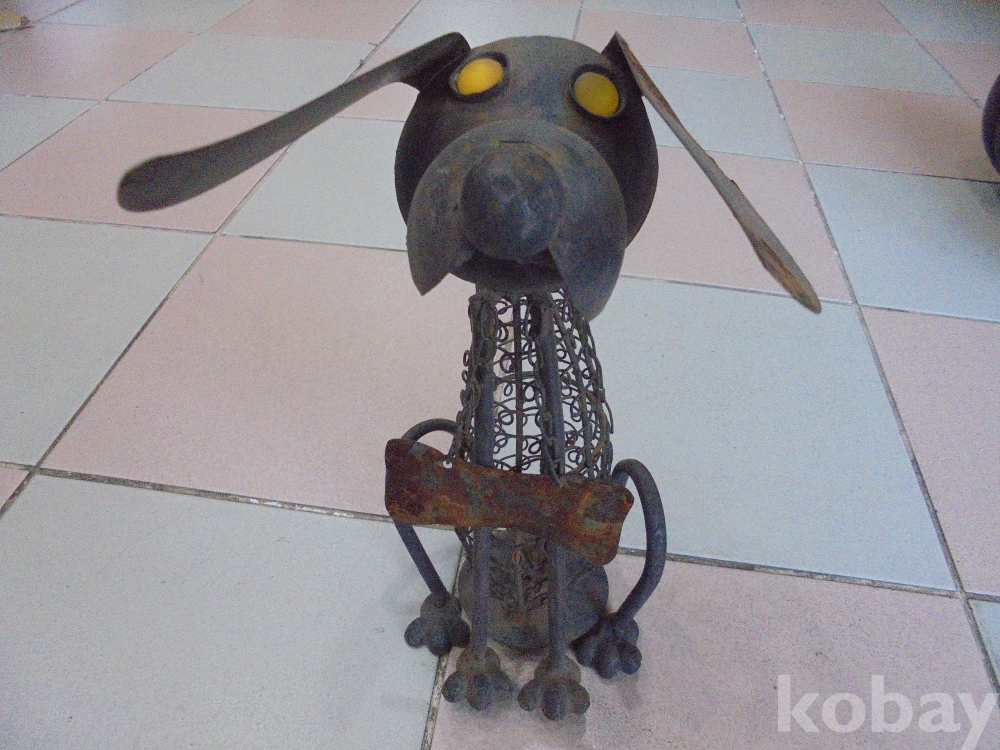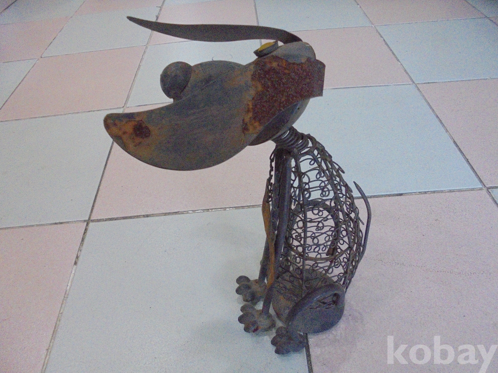 귀가 늘어지고 목을 스프링으로만들어 움직이고 발도 속이빈굵을철사와 발굽도만들어 아주멋있은 양철과철사로만든 움직이는 포인타개