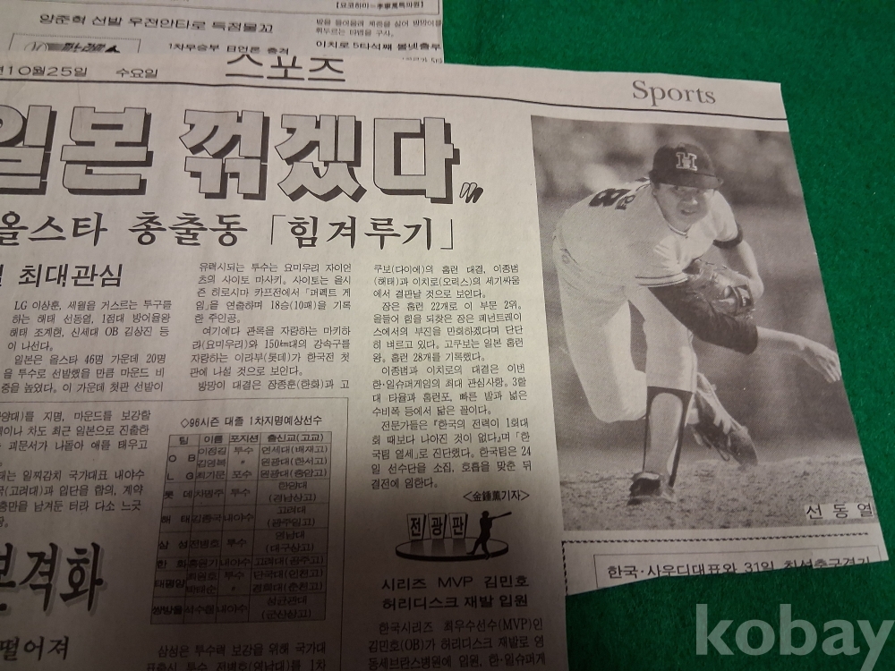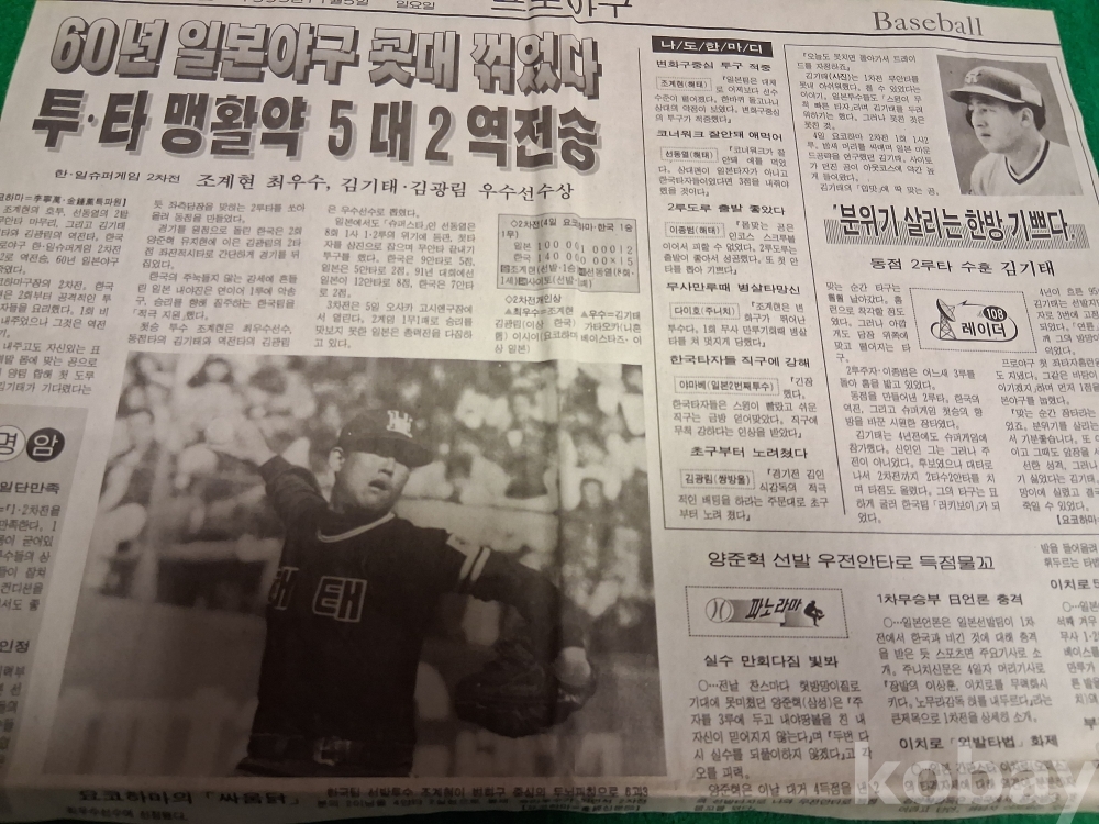 (한.일야구) 60년 일본야구 콧대 꺾었다(선동렬, 조계현, 이종범, 양준혁, 장종훈 등) 관련기사-1995년