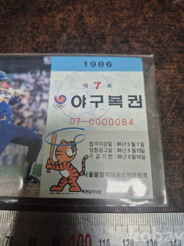 1986년 제 7회 야구복권 서울 올림픽 조직 위원회 사진응 MBC청룡 이광은 선수 13.5*8