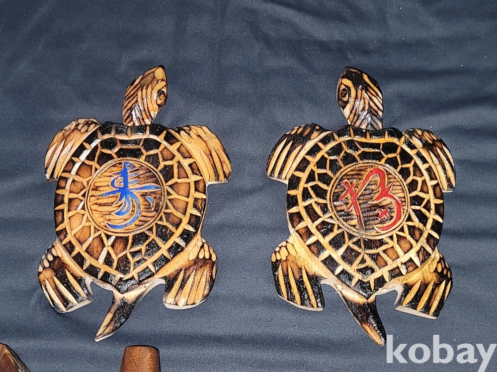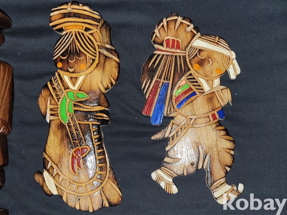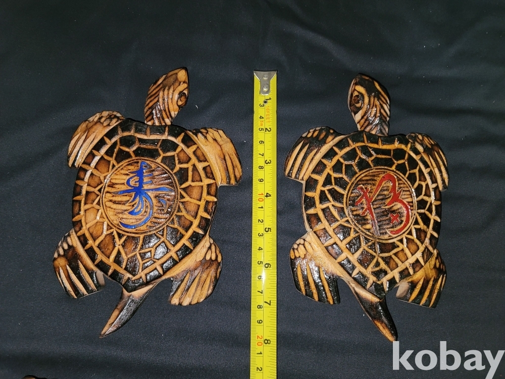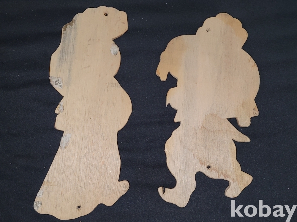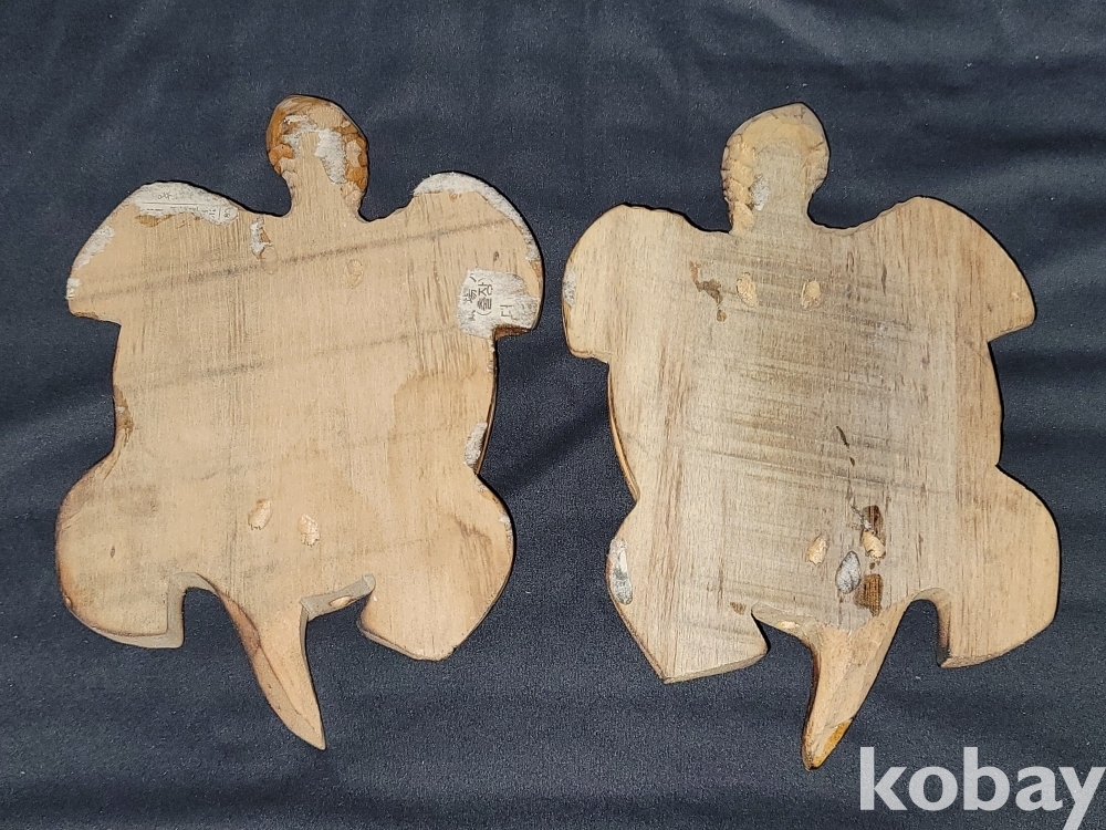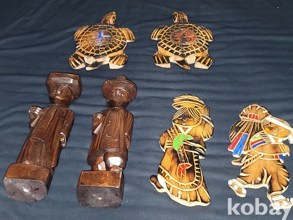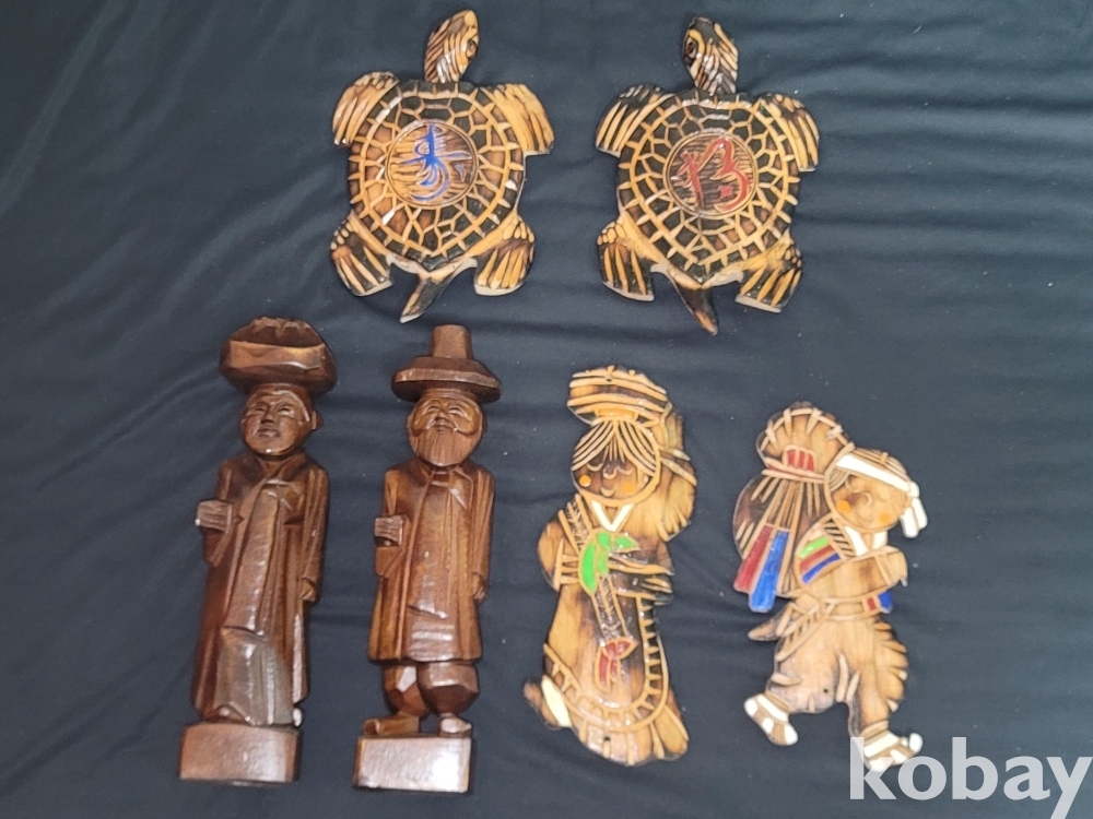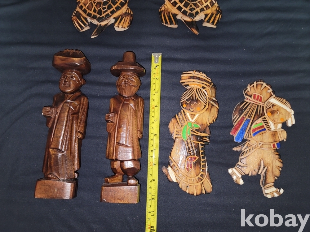 빈티지 노부부, 거북이 등 각종 나무 조각상 장식 민속품 일괄입니다.