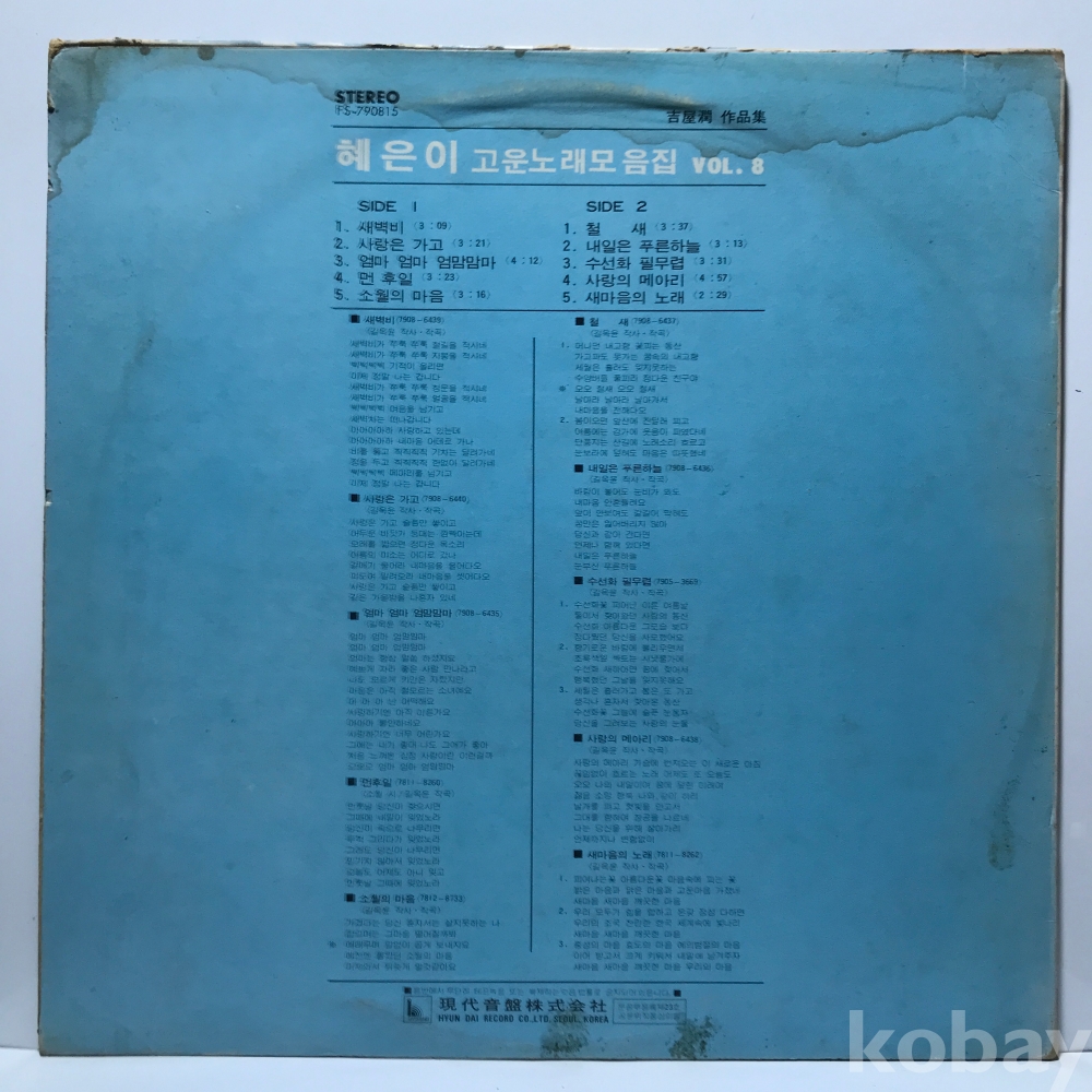 LP 35,750-77 혜은이 고운노래모음 8 - 새벽비 . 79 현대 자켓 EX 알판 EX
