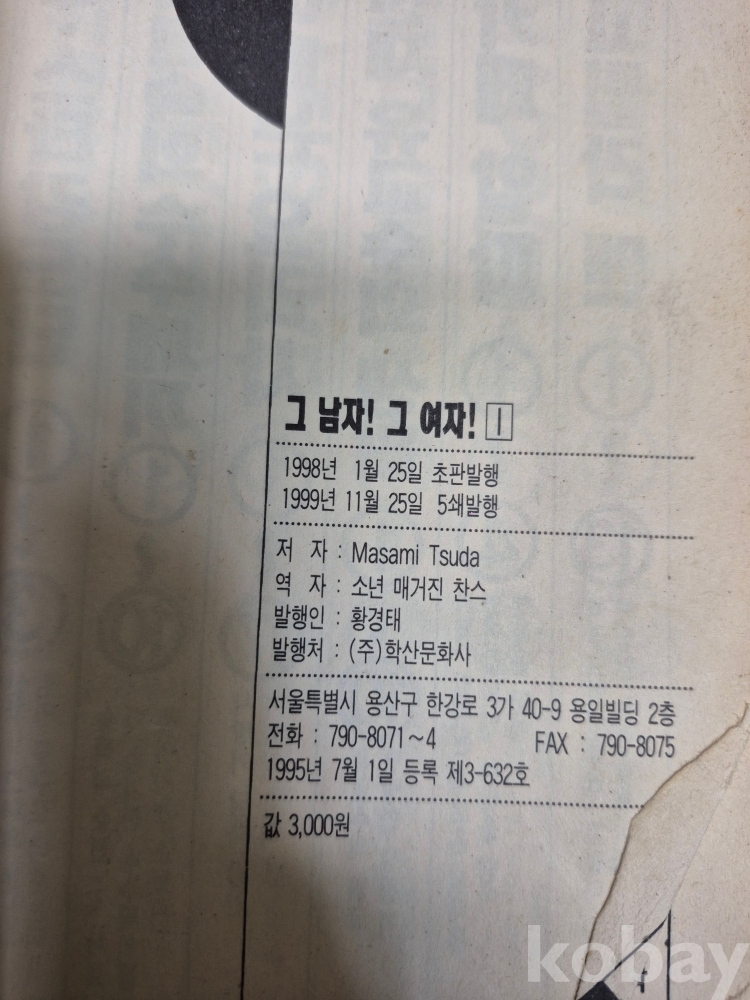 1999년 마사미 투스타 그남자 그여자 1권에서 21권 까지 완결