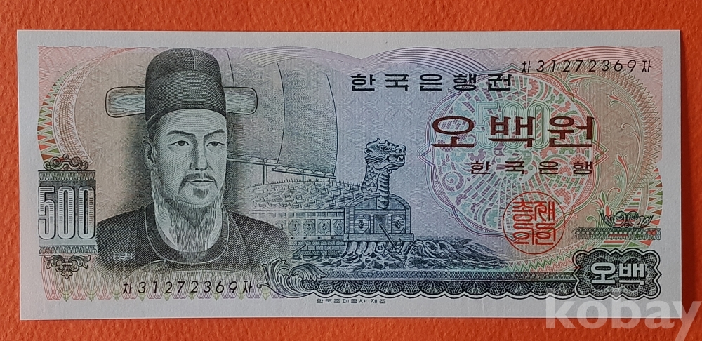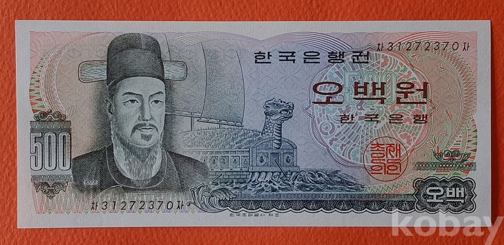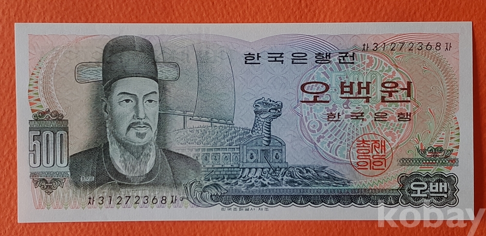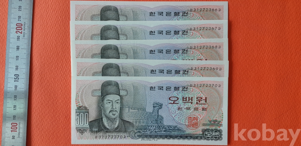 한국은행 다 500원권(이순신) 5연번 지폐 5장 입니다.