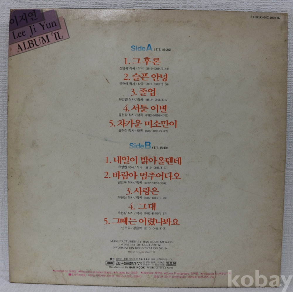 | 제조국 | 한국 | 발매연도 | 1989 |