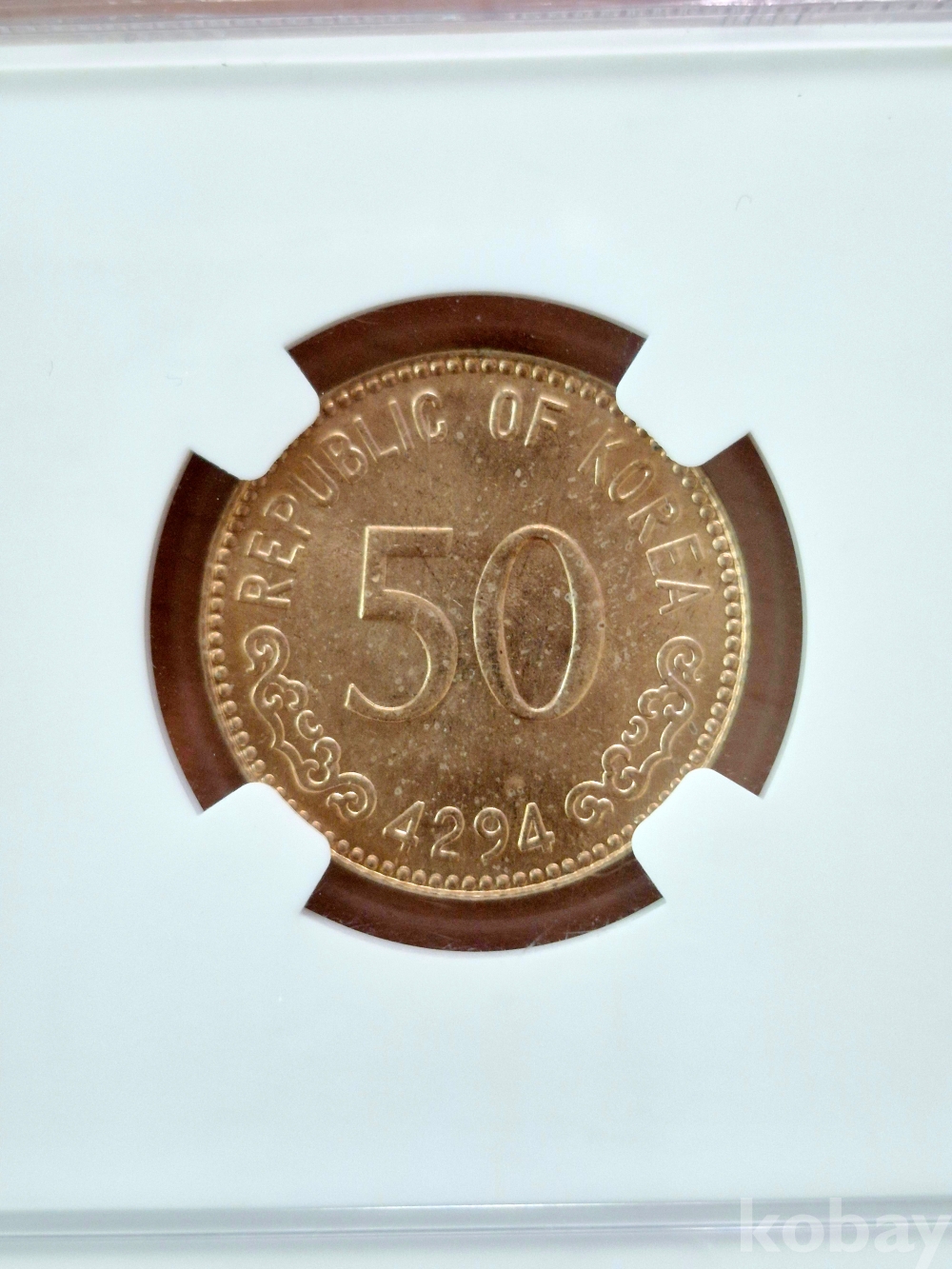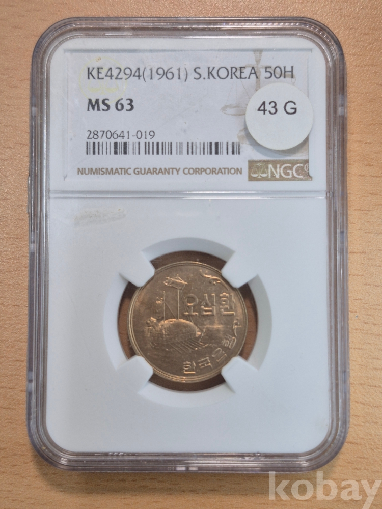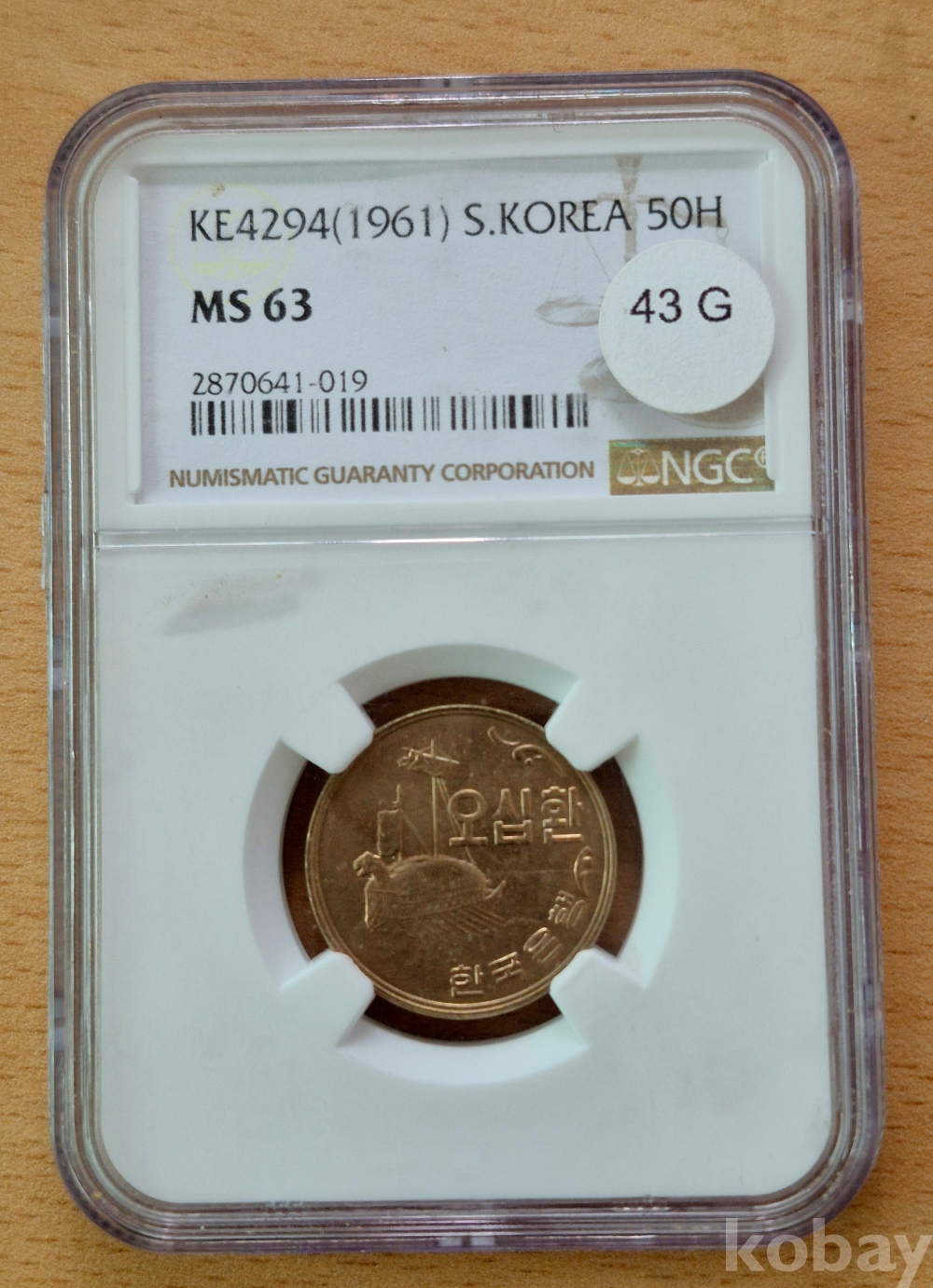 1961년 (KE4294년) 한국은행 50환 거북선 주화 - 완전미사용 (MS63)