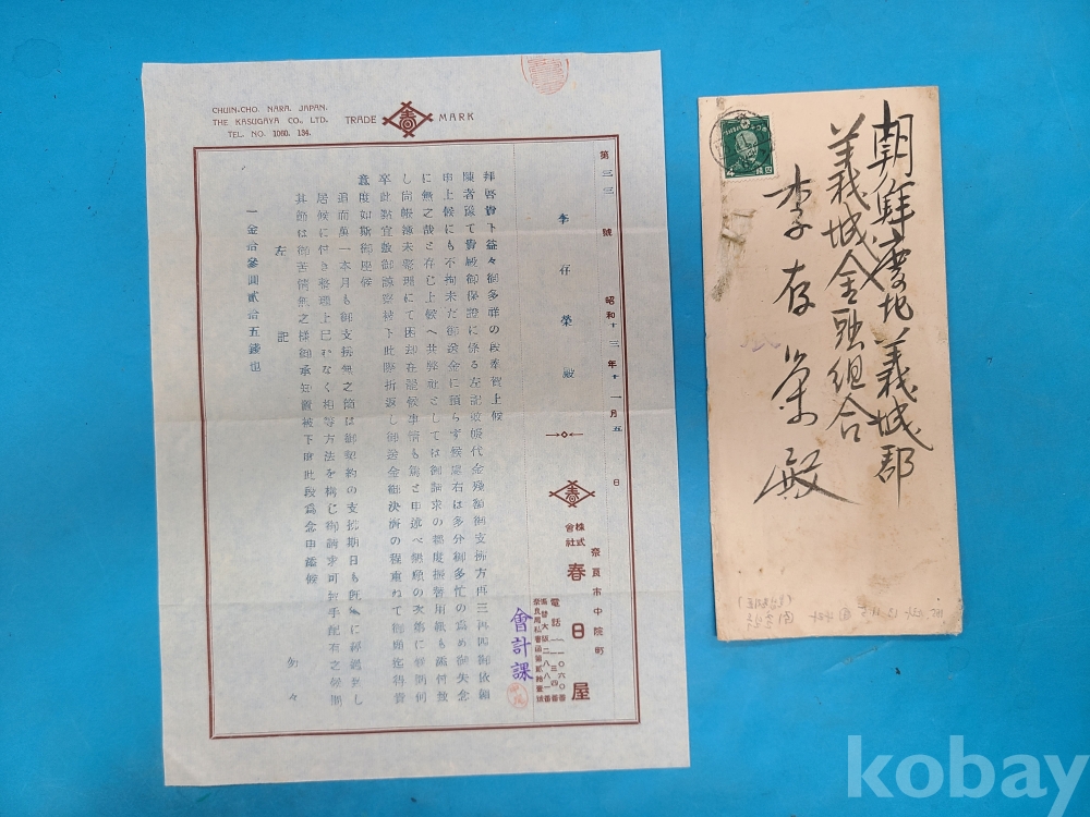 **** 1938년 일본 나라→의성금융조합 상업문서,실체봉투