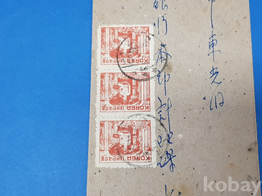 **** 제2차보통 200원 석굴암 3매첩부 실체/안동 → 부산시 조흥은행본부