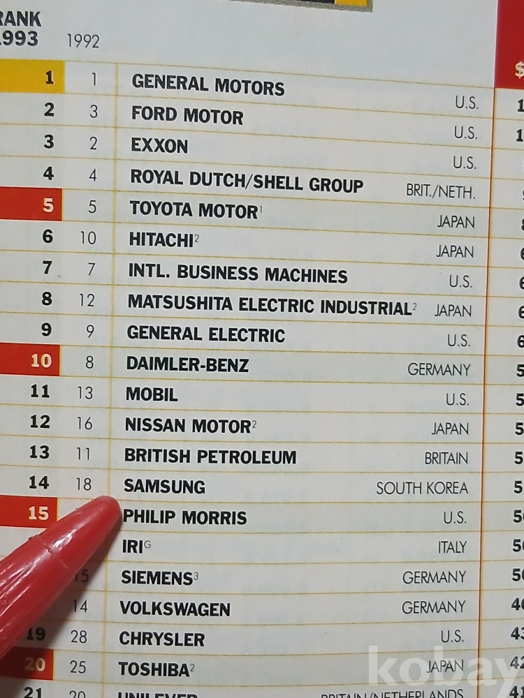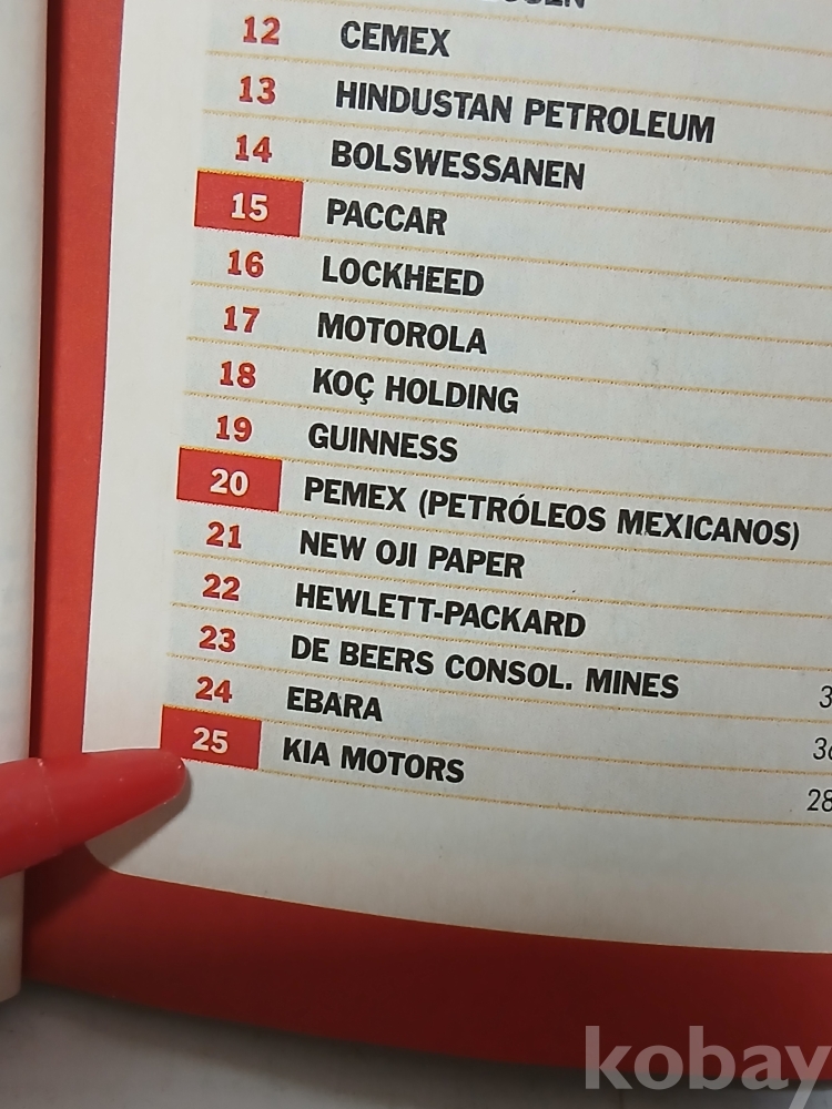 94년 당시 글로벌 500대 기업을 선정하여 각 분야별로 수록하였으며 그 안에 삼성,현대 등 한국기업 명단도 보이며 곳곳에 한국기업 광고가 개재되어 있습니다.