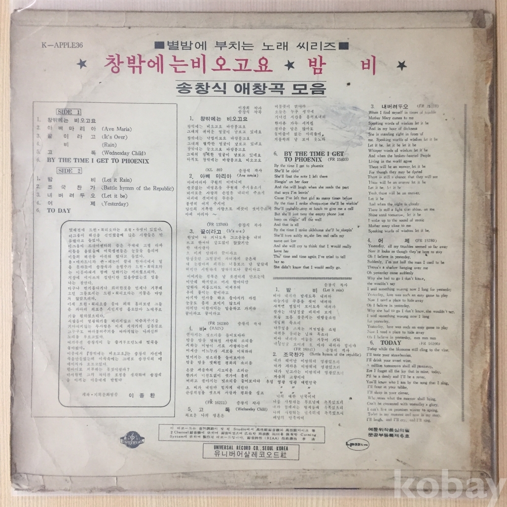 ⊙ 1971년 / 유니버어살레코드 - K-APPLE36