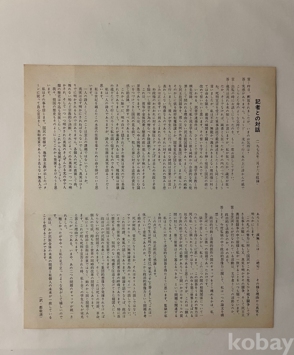 B면 1975년 일본 기자와의 대화 김지하 시인의 인터뷰