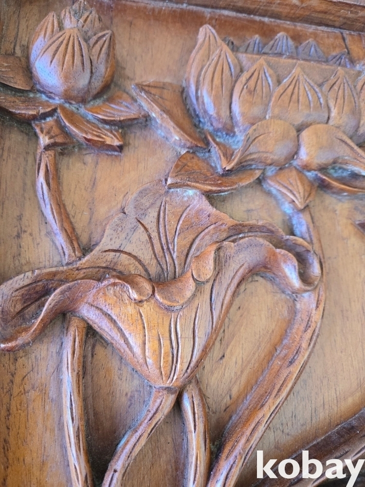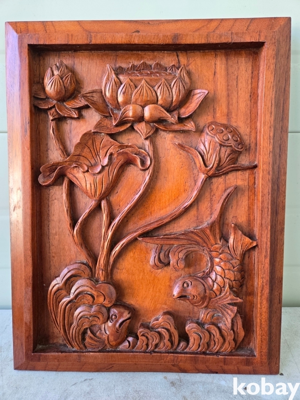 물고기와 연꽃 문양을 아름답게 조각한 액자형 판 입니다.