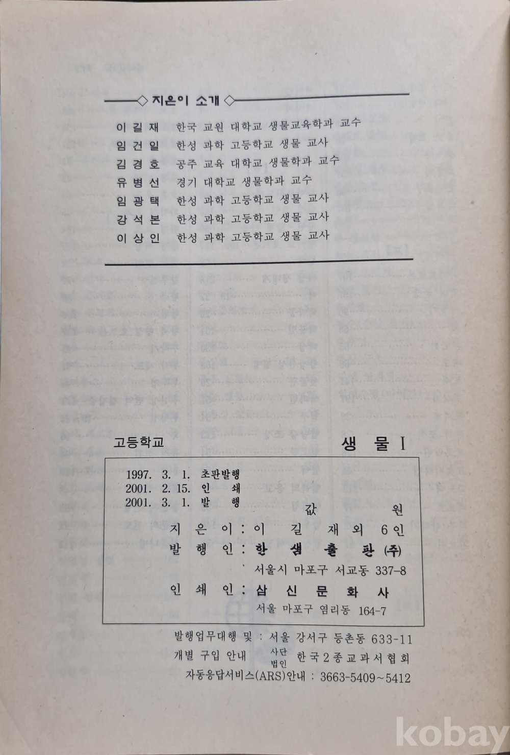 [ 고둥학교_생물 Ⅰ]_ 교육부 검정 199.6. 11,