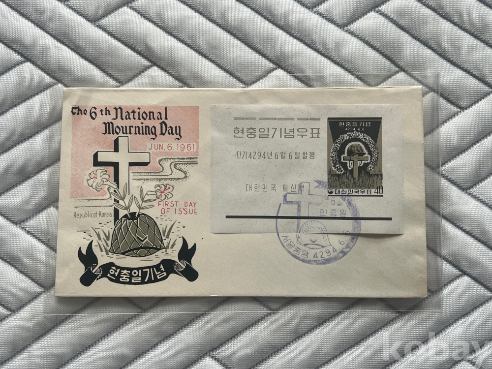 1961년 현충일 기념 소형시트 첩부 초일봉피 입니다.