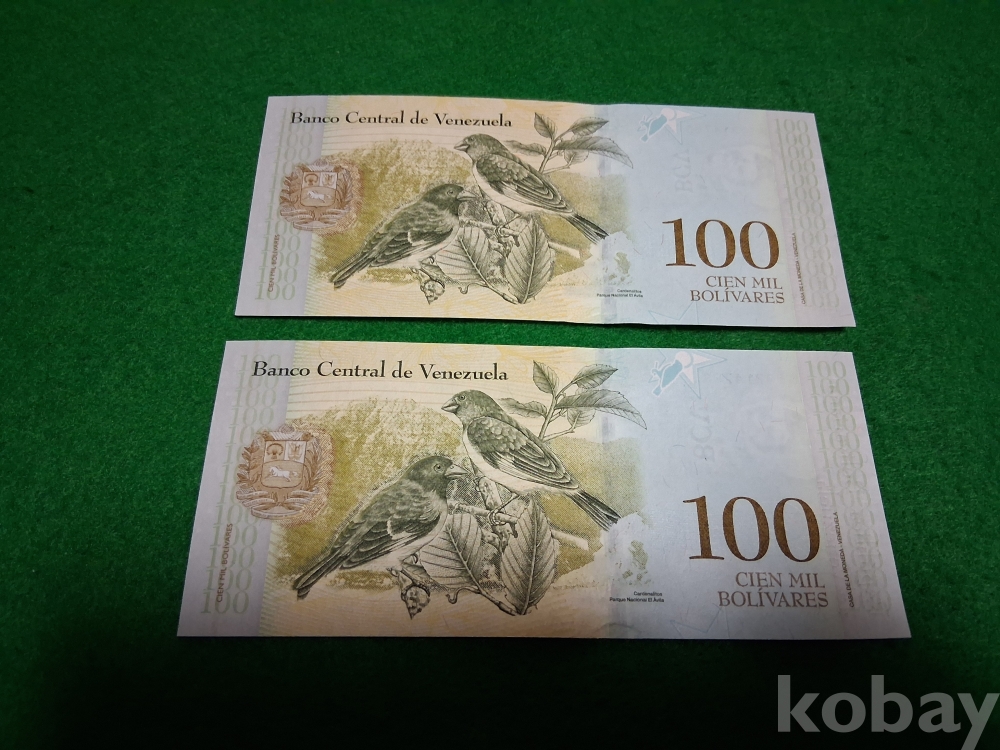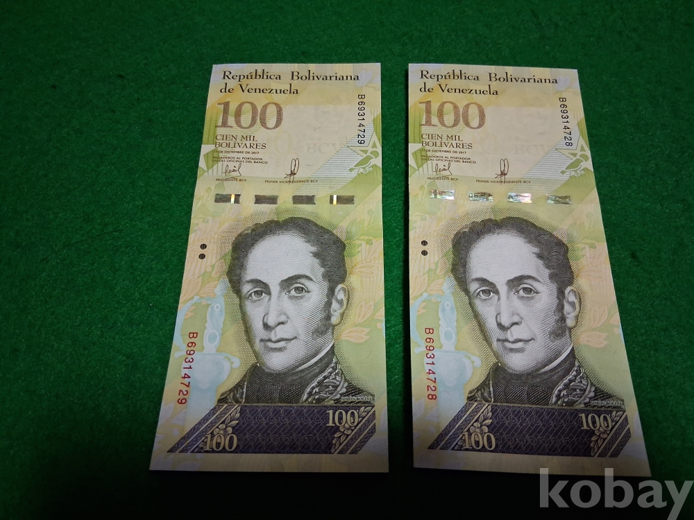 (외국지폐) 베네수엘라 연번호 지폐2매-미사용