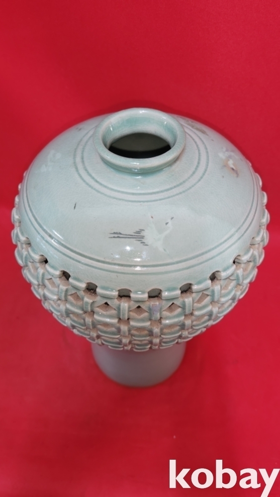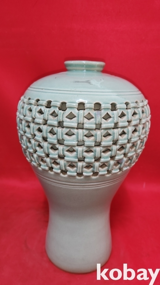 청산도예 비색청자 ( 翡色 靑磁) 투각 구름과 학(雲鶴)문양 매병입니다,