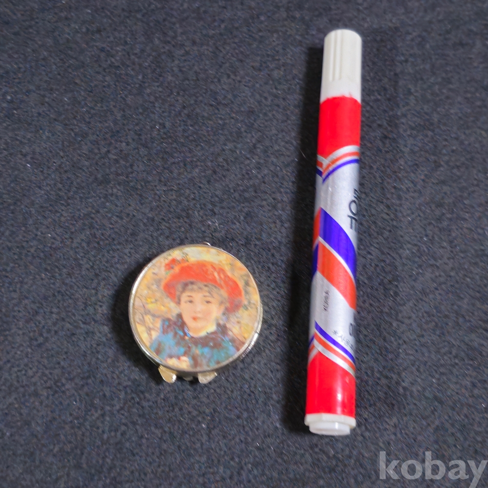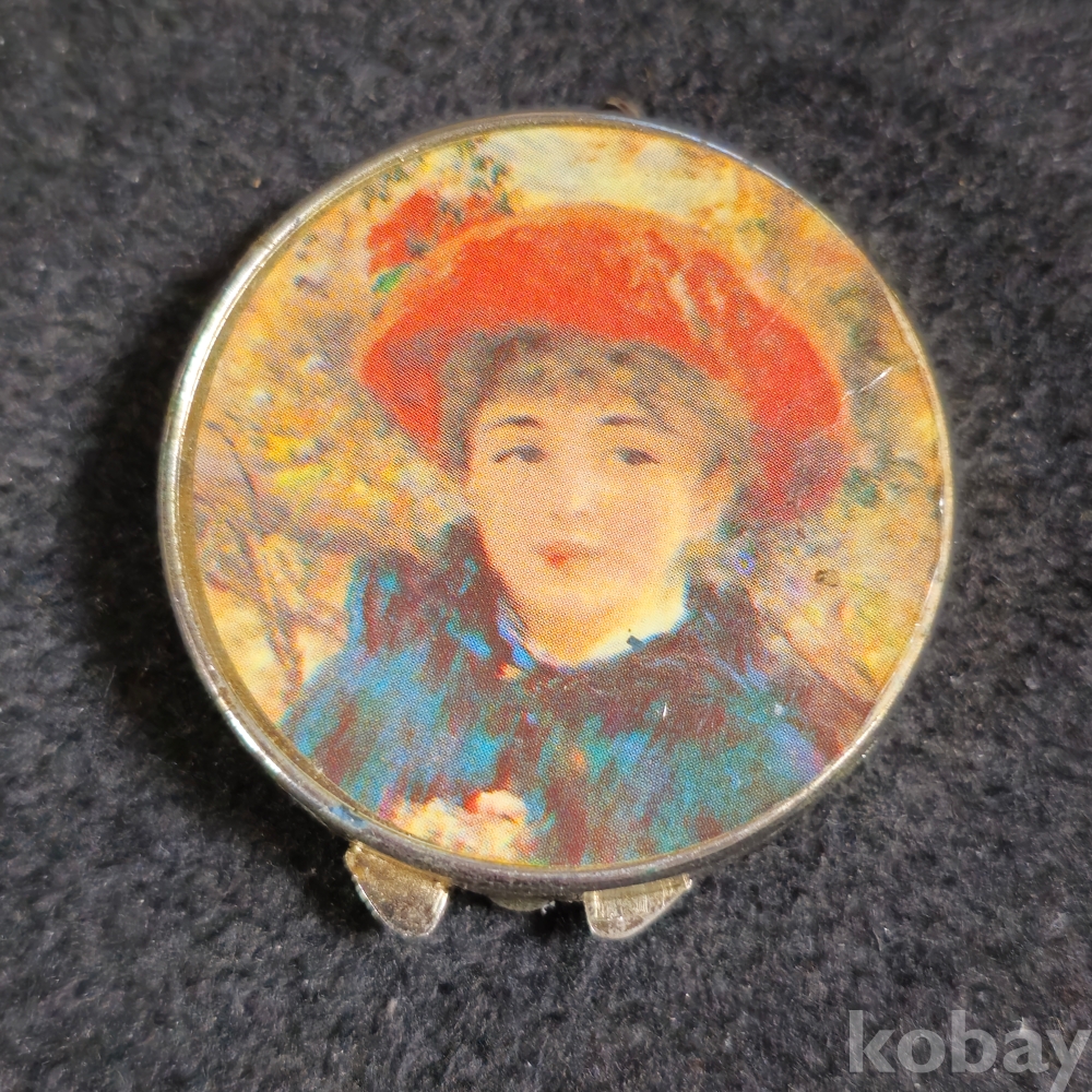 (((근현대사자료/소품))) 오래전 명화그림있는 금속 휴대용 손거울