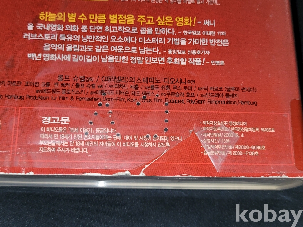 빈티지 영화 비디오테이프 2000년 글루미 선데이, 1993년 바톤 핑크 등 2종 일괄입니다.