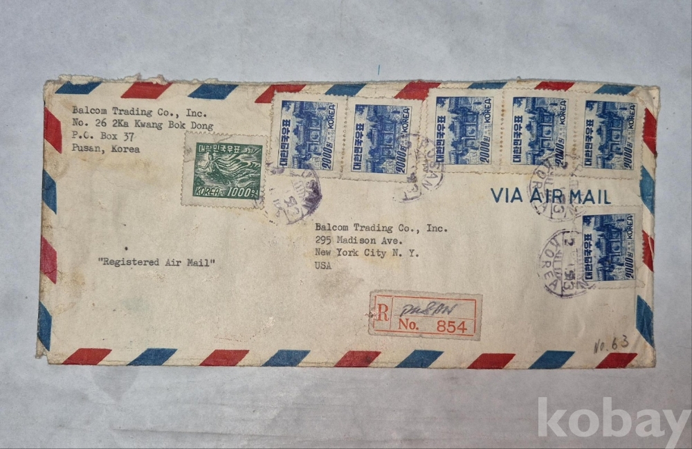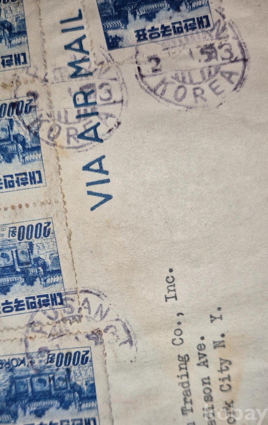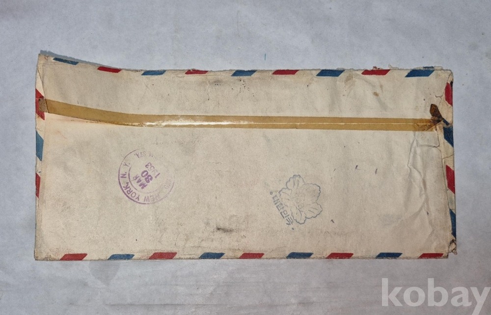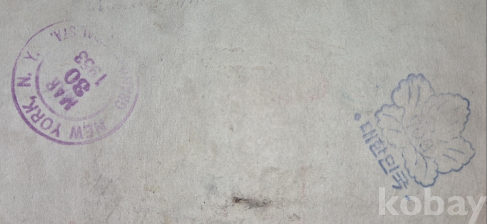PUSAN 2.?1.53 소인과 NEW YORK 3.30.1953 소인이 찍혀 있습니다.