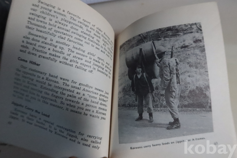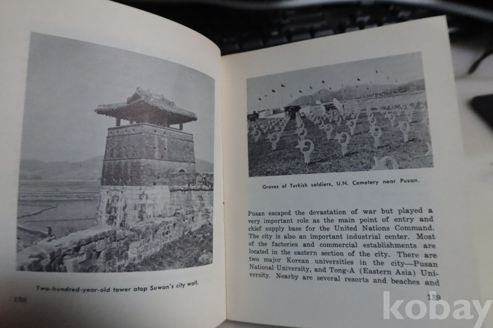 227페이지에 걸쳐 한국에 대한 역사 문화 에티겟 등등 미국인을 위한 가이드 책 임니다 재미난 그림 등등 귀한 서적 임니다 표지는 세월의 흔적이 보임니다 사진 참조 하세요