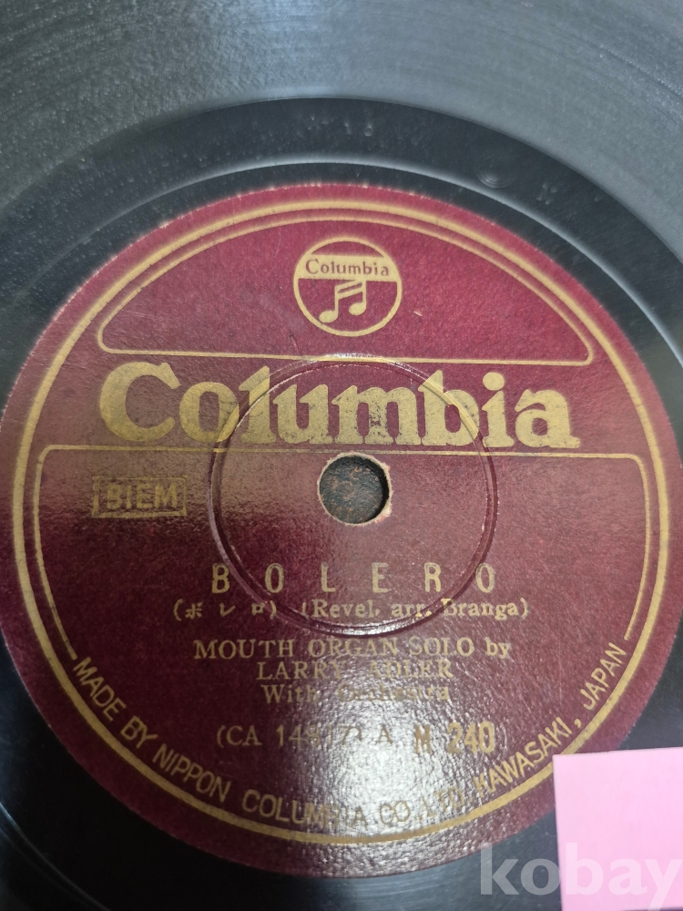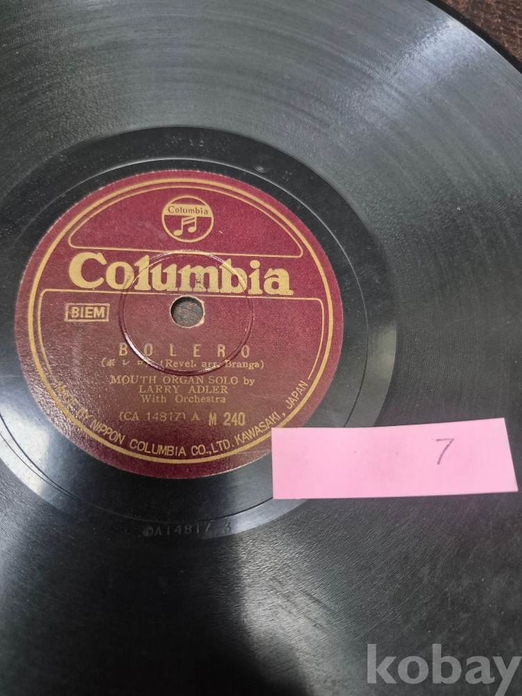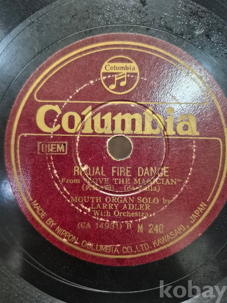 콜롬비아 레코드사 RITUAL FIRE DANCE (불의 춤) 래리 애들러 마우스 오르간 솔로 연주 7 유성기 돌판 1점 25*25