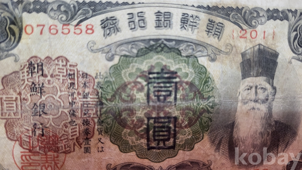 이 지폐는 조선총독부 산하의 조선은행에서 발행되었으며,