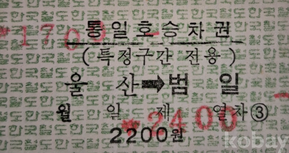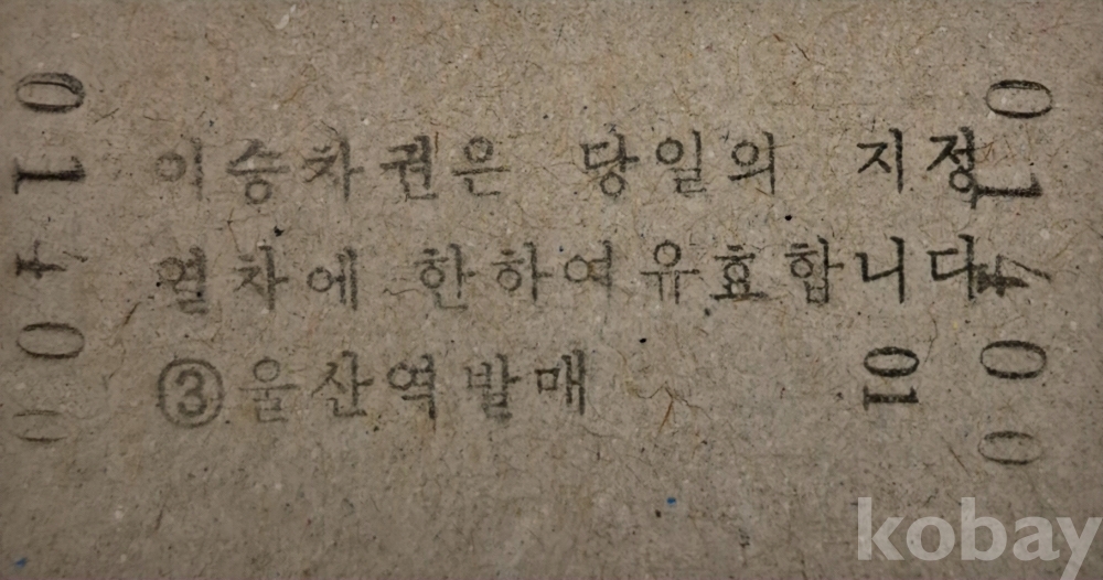 통일호 승차권(암색권) 울산-범일 일반입니다.