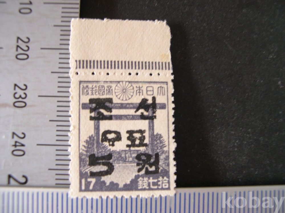 가늠표시 상변지부 보통 #115 : 5원/17전 야스쿠니신사 - 미군정청 가쇄보통 (1946. 2. 1) *이면, 노 검*