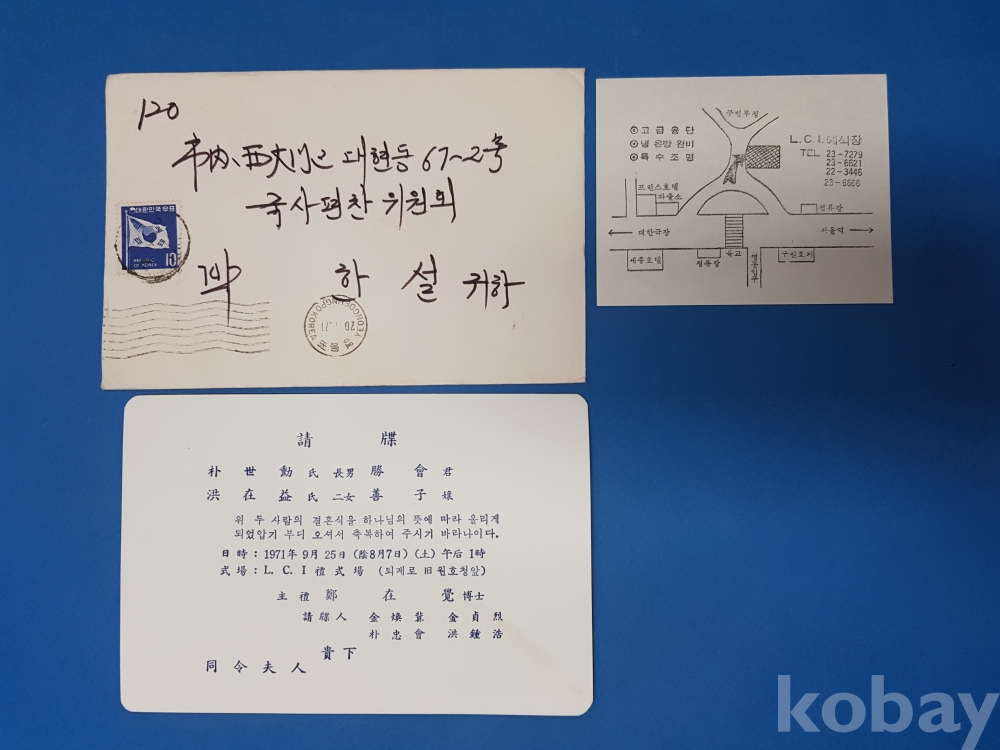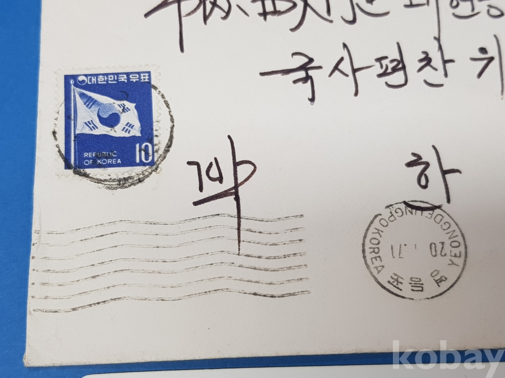 **** 1971년 제1차그라비아 10원 태극기 단첩 실체(영등포 기계인)*청첩장