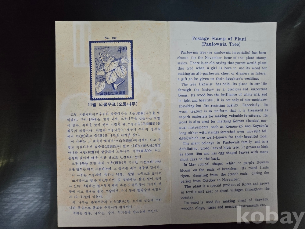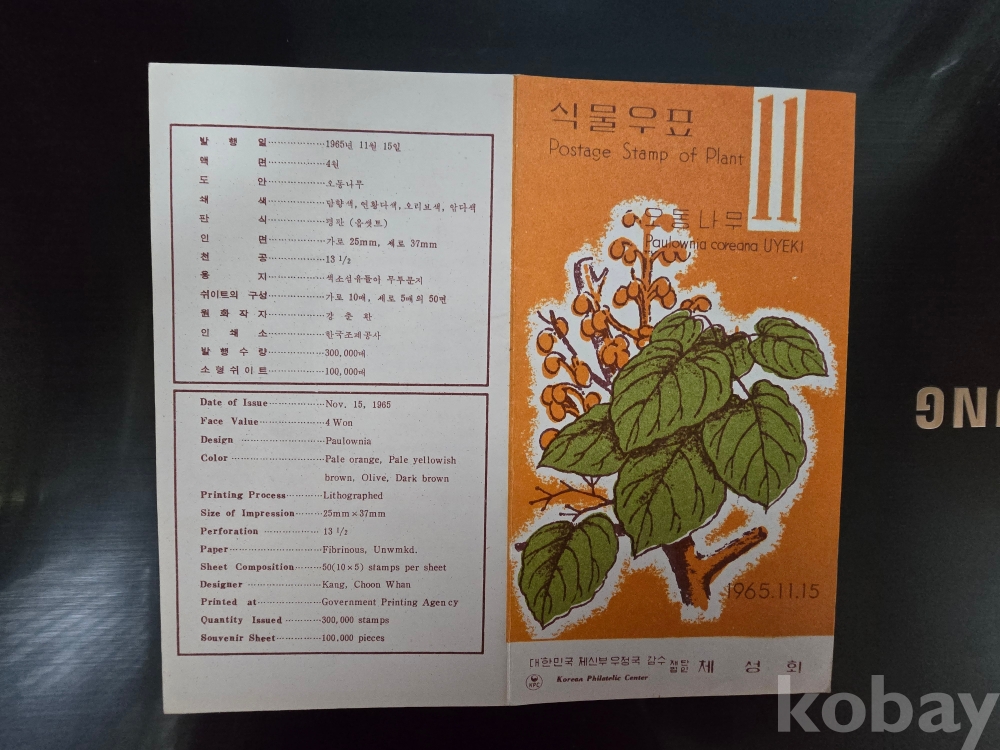 우표안내카드/65'11.15 식물우표 오동나무 접힘 있슴