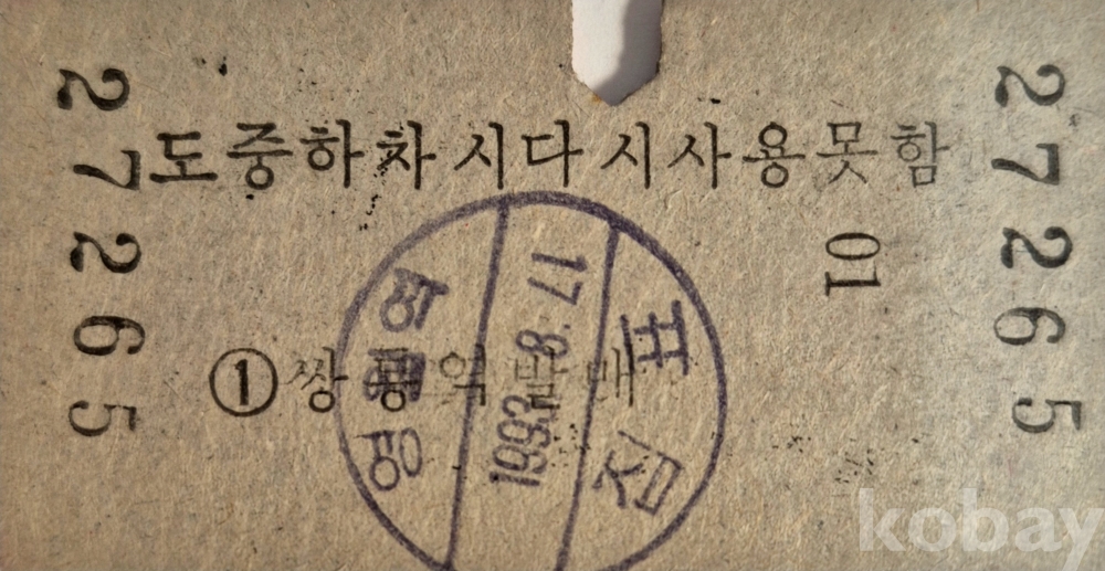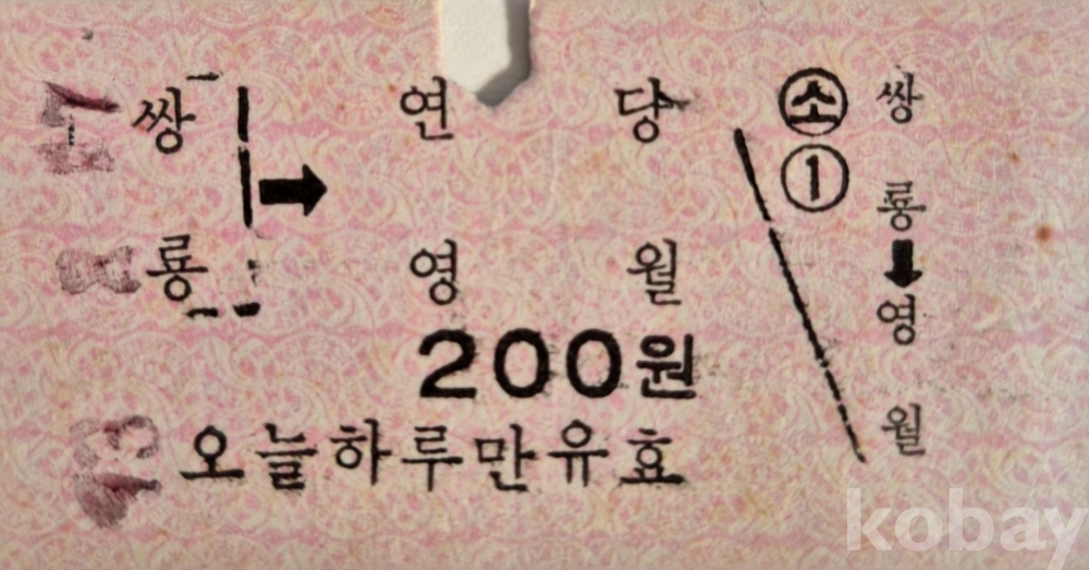 비둘기호 승차권 쌍룡-영월 일반입니다.