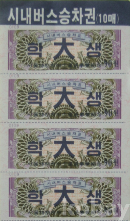 1980년대 서울시 대학생 시내버스 승차권 10장