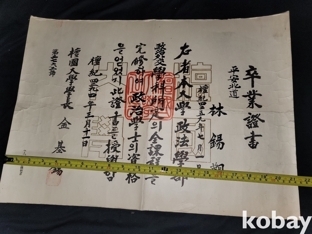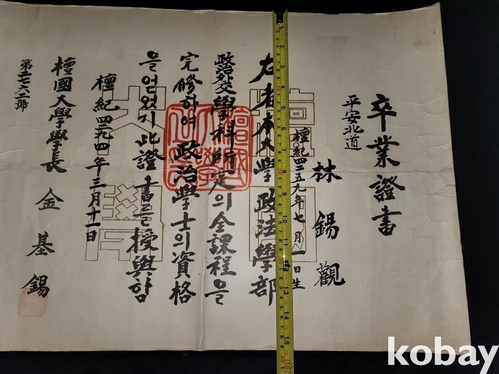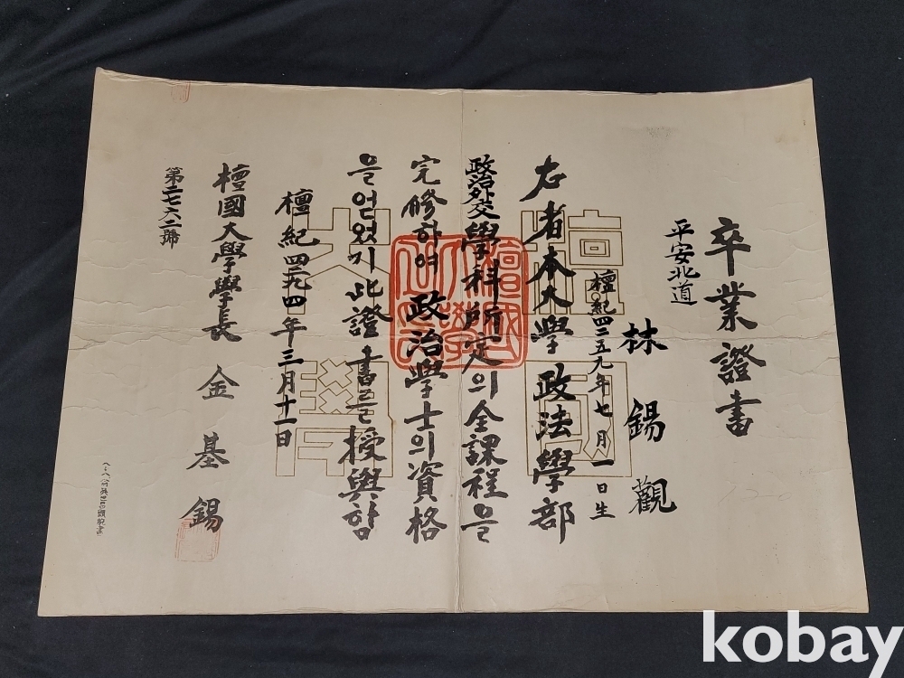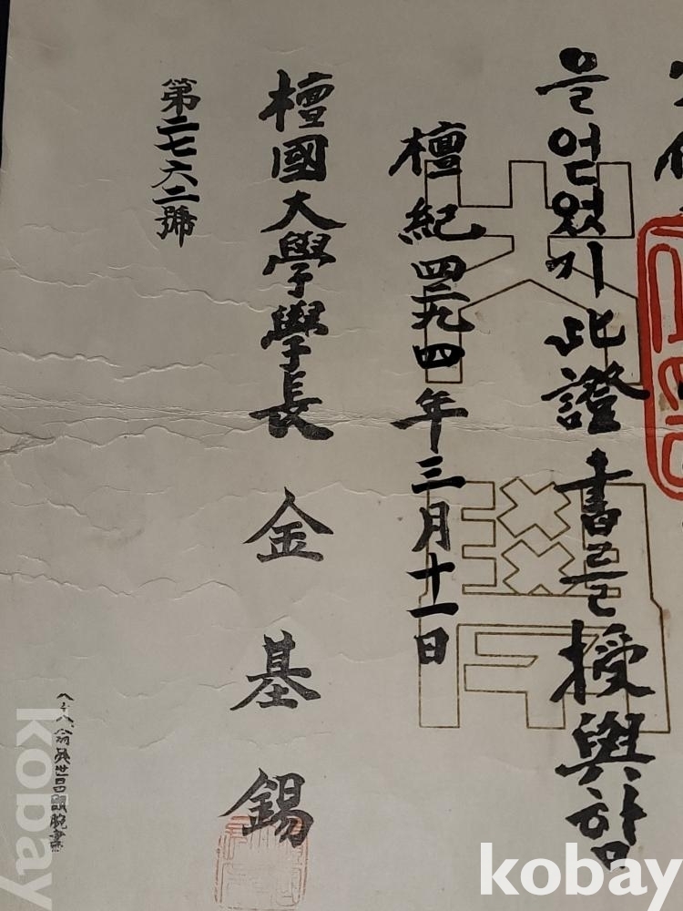 빈티지 세월 감이 느껴지는 1961년 단국대학교 졸업장 자료입니다.