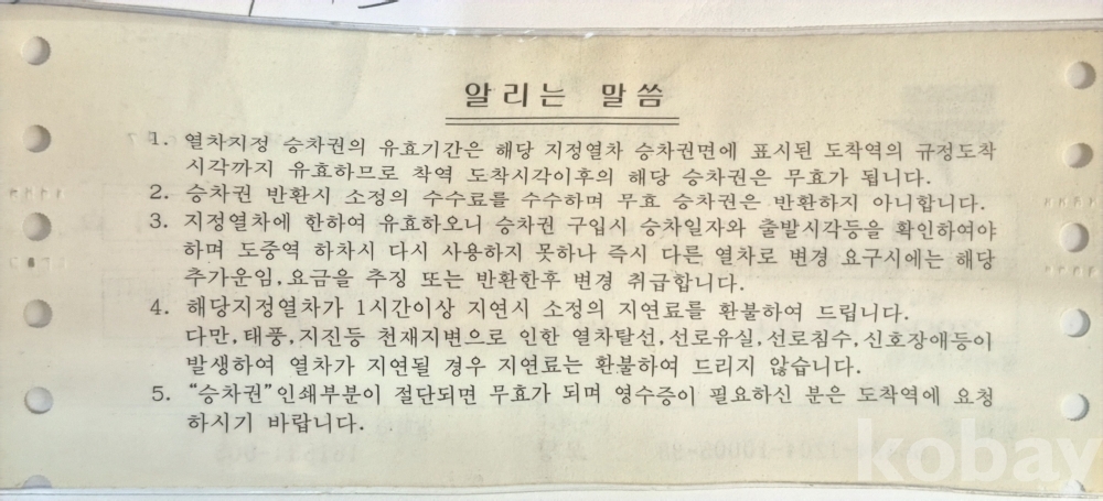 특히나 철도청 역삼각마크 초기(1996년 말)에 쓰였던 용지를 사용함으로써, 굉장히 의미가 있습니다.