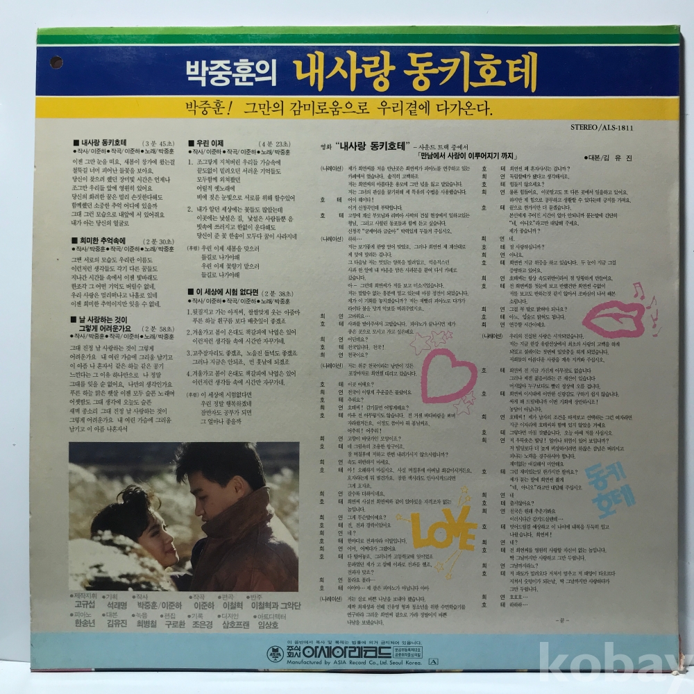 LP 83,780-18 박중훈 내사랑 동키호테 . 자켓 EX+ 알판 NM 89 년제작 국내반