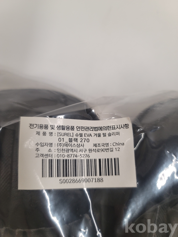 [천원경매] 11-0202 겨울털슬리퍼(색상.블랙 사이즈270.미개봉)